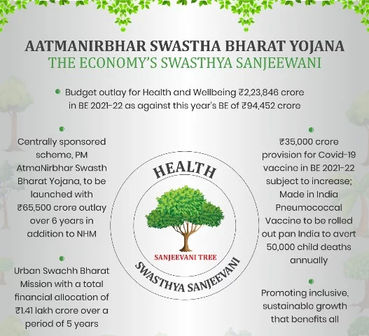64,180 करोड़ रुपए के बजट के साथ प्रधानमंत्री आत्मनिर्भर स्वस्थ भारत योजना शुरू होगी. इसके जरिए स्वास्थ्य देखभाल प्रणालियों की क्षमता विकसित करने, नई बीमारियों का पता लगाने और ठीक करने के लिए नए संस्थानों का विकास किया जाएगा.