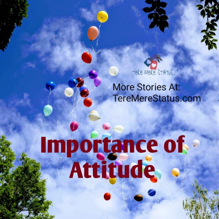 Attitude अंग्रेजी भाषा का सबसे महत्वपूर्ण शब्द है। यह जीवन के हर क्षेत्र पर लागू होता है, जिसमें व्यक्तिगत और व्यावसायिक जीवन भी शामिल है। क्या एक Executive एक अच्छे Attitude के बिना एक अच्छा Executive हो सकता है? क्या एक अच्छा Attitude के बिना एक छात्र एक अच्छा छात्र हो सकता है? क्या माता-पिता, शिक्षक, विक्रेता, नियोक्ता या कर्मचारी अपनी भूमिकाओं में अच्छे Attitude के बिना अच्छे हो सकते हैं? आपके चुने हुए क्षेत्र की परवाह किए बिना, सफलता की नींव Attitude है। यदि Attitude सफलता में इस तरह का एक महत्वपूर्ण कारक है, तो क्या आपको जीवन के प्रति अपने Attitude की जांच नहीं करनी चाहिए और पूछना चाहिए कि आपका रवैया आपके लक्ष्यों को कैसे प्रभावित करेगा?