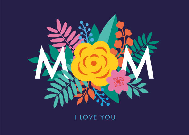 Mother’s day lettering design with beautiful blossom flower. Stock illustration